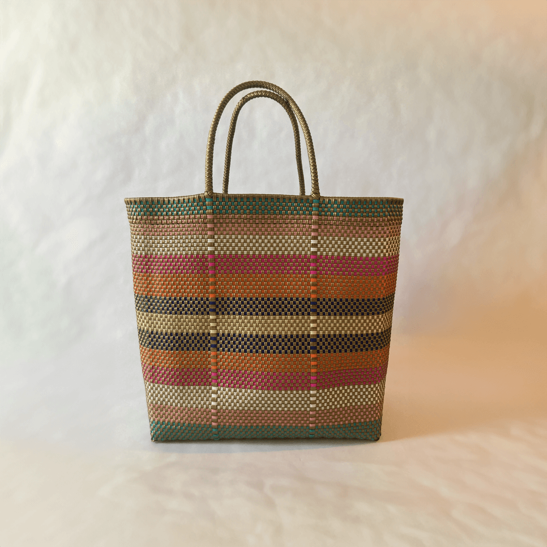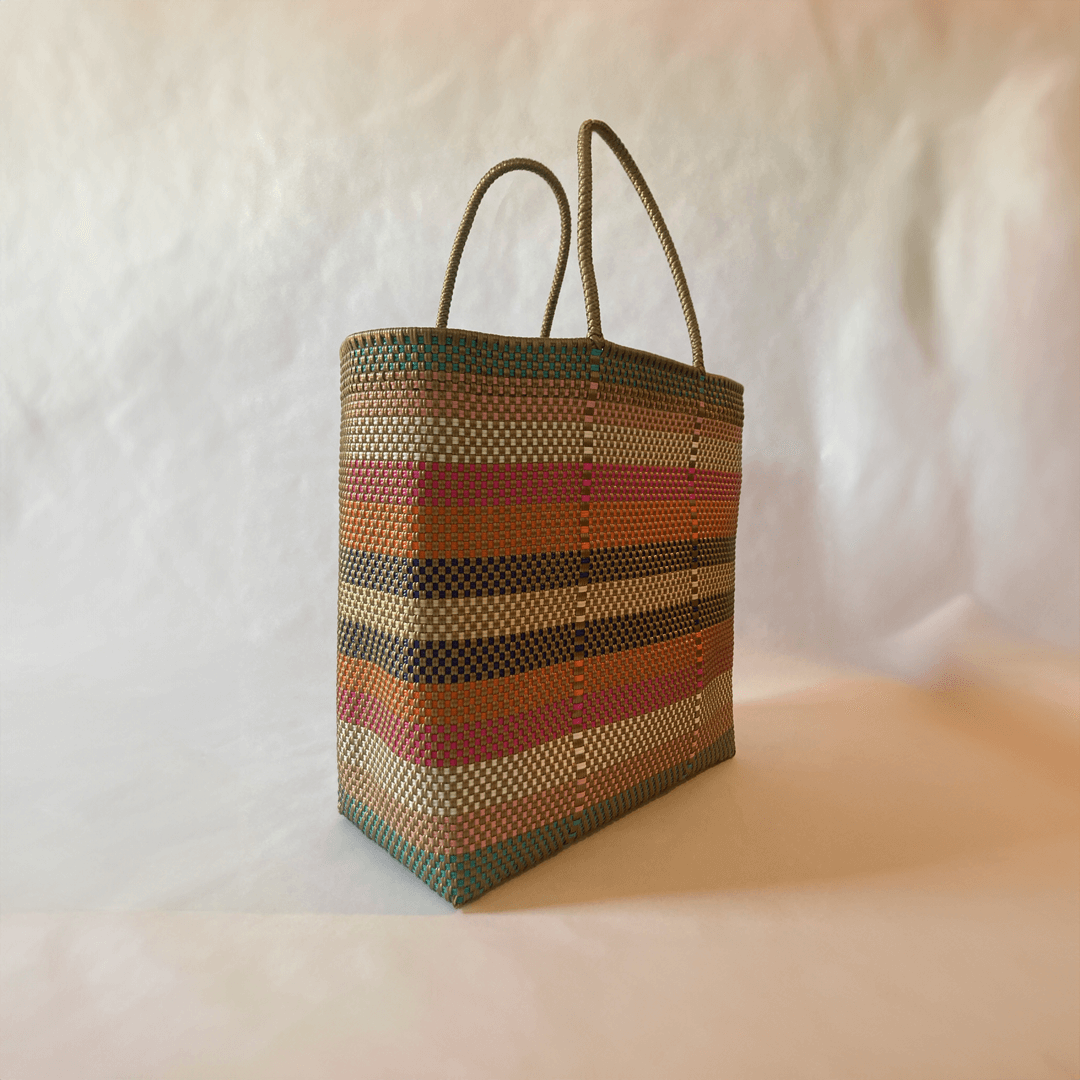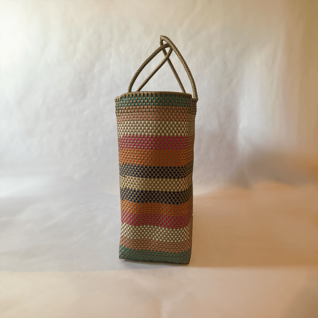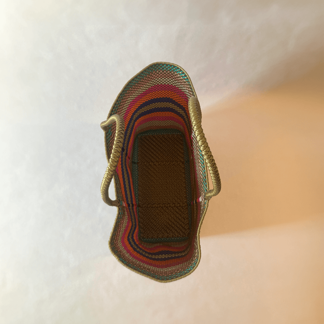Shine bright with the Golden Sky handwoven bag, featuring a dazzling array of gold tones that capture the beauty of a sunset sky. This eco-conscious tote is crafted from recycled plastic by skilled artisans, offering a blend of sustainability and fashion. With its spacious design, the Golden Sky bag is perfect for carrying daily essentials while adding a touch of elegance to your outfit.