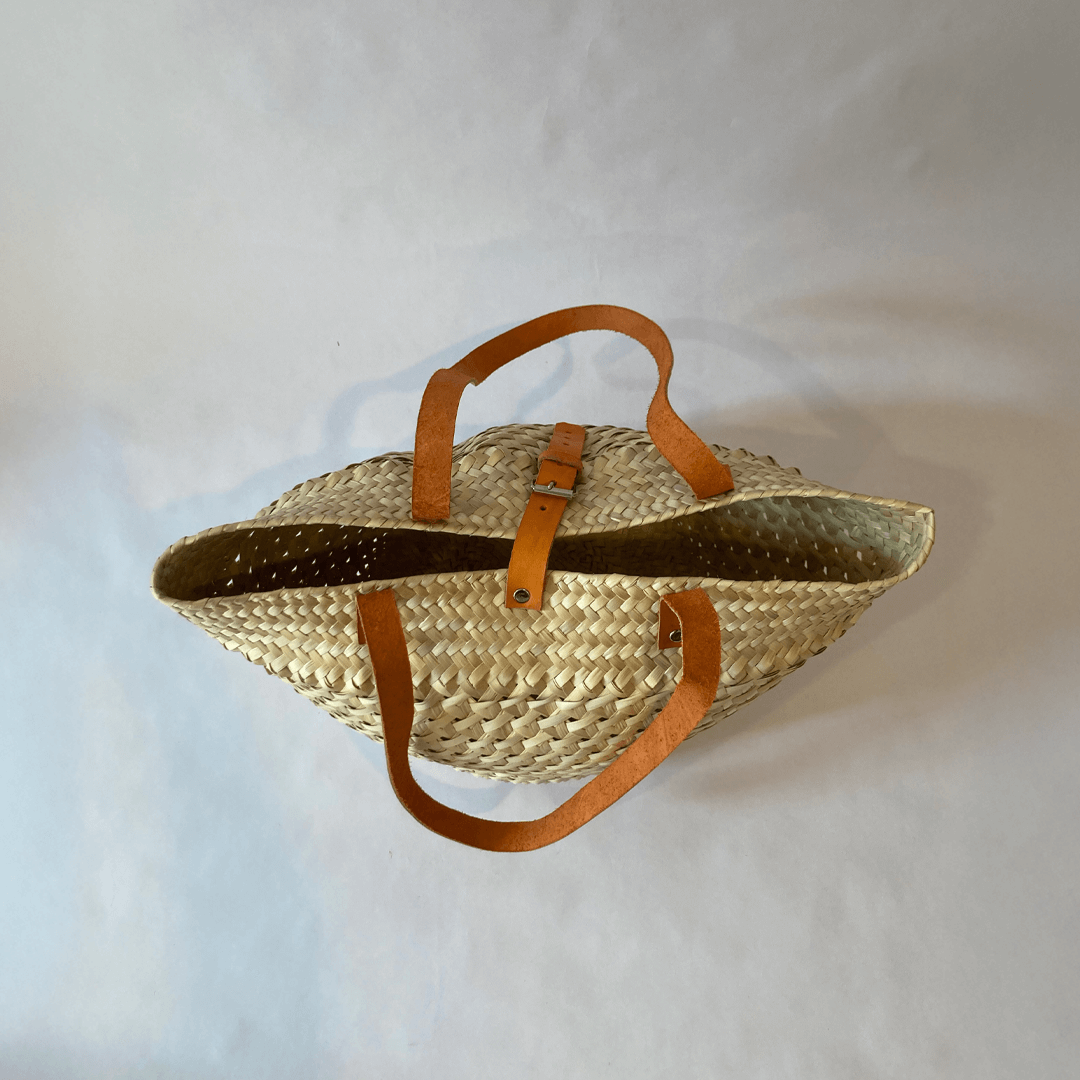 Experience the perfect blend of tradition and style with our handcrafted palm handbag. Made from natural palm fibers, this bag features a beautiful handwoven design that speaks to the expertise and traditions of our artisans. The soft, neutral tones of the palm weave are complemented by sturdy, rich leather handles, making it both durable and stylish. Ideal for a day out shopping, a beach trip, or as a chic everyday accessory, this handbag is as versatile as it is beautiful. Its spacious interior allows you to easily carry all your essentials, while the elegant closure ensures your belongings stay secure. Add a touch of artisan craftsmanship to your collection with this timeless piece.
