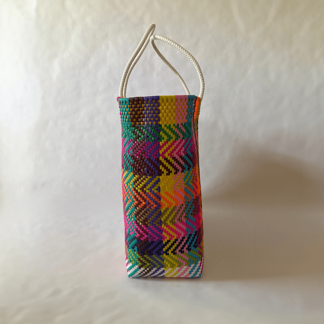Inspired by the comforting beauty of a quilt, the Quilt handwoven bag is a masterpiece of craftsmanship and sustainability. Made from recycled plastic, this bag showcases a stunning patchwork design, perfect for those who love intricate patterns. Whether you're heading to the market or spending a day out, the Quilt bag offers ample space while staying eco-conscious.