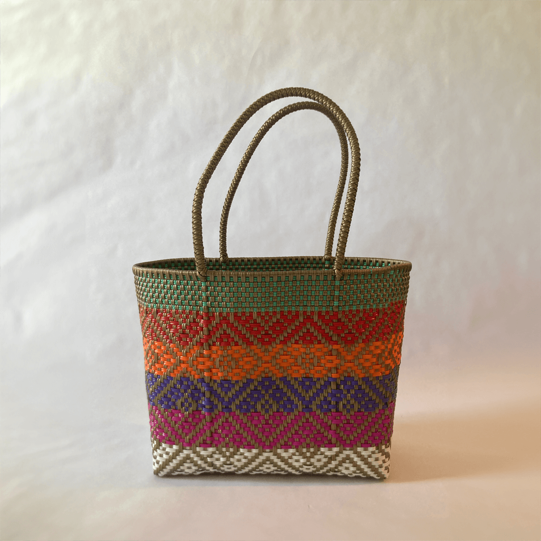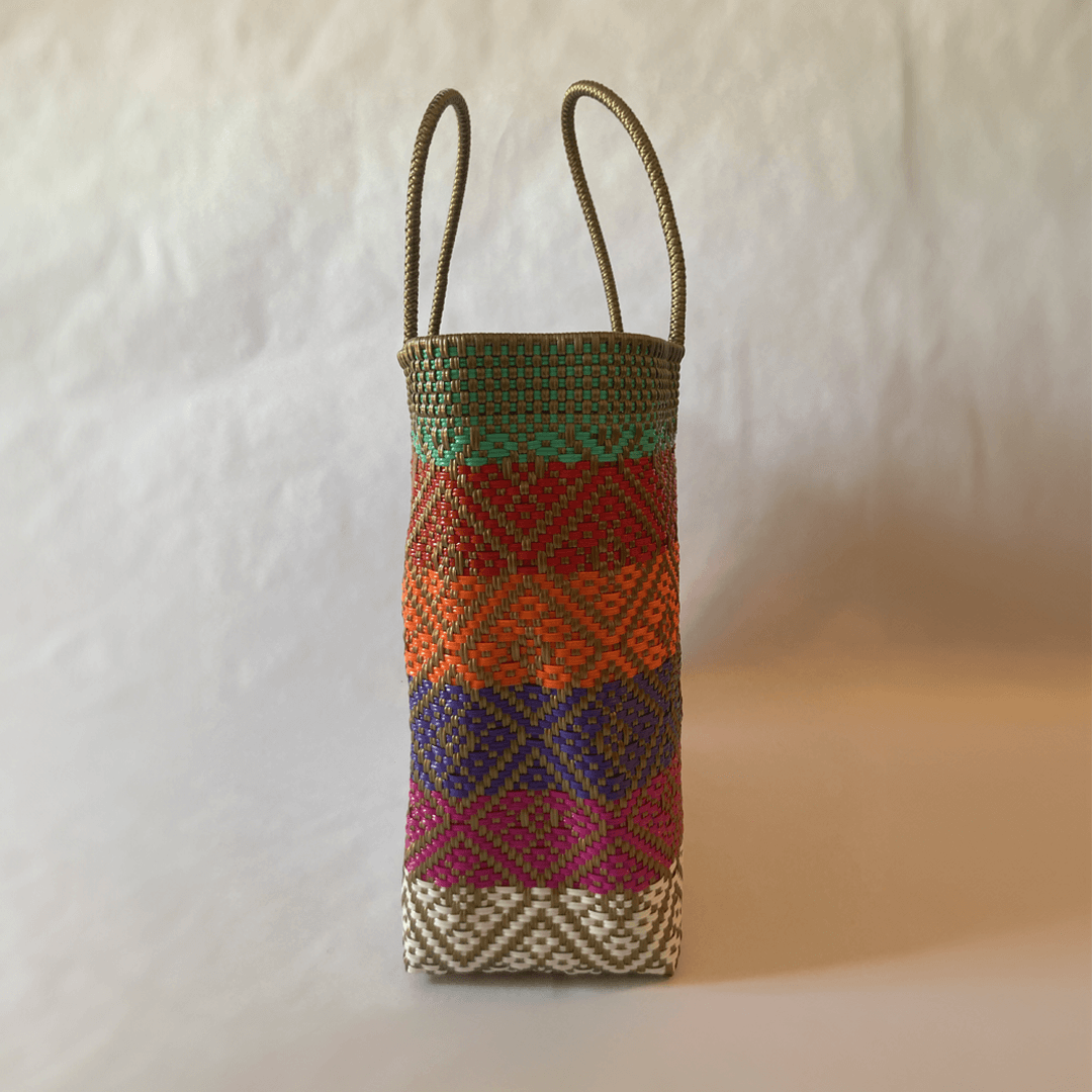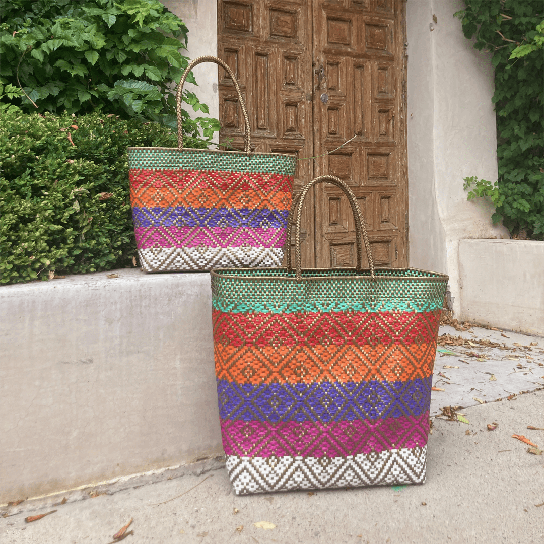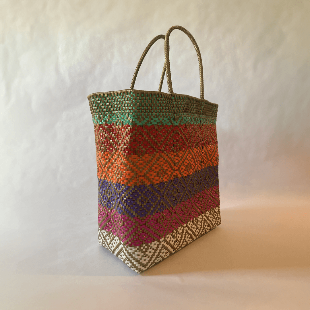 Capture the warmth of the desert sky with the Santa Fe Sunset handwoven tote. This eco-friendly bag, crafted from recycled plastic, combines shades of orange, red, and gold to mirror the beauty of a Santa Fe sunset. Perfect for weekend getaways or casual outings, the Santa Fe Sunset tote offers both style and sustainability in one stunning package.